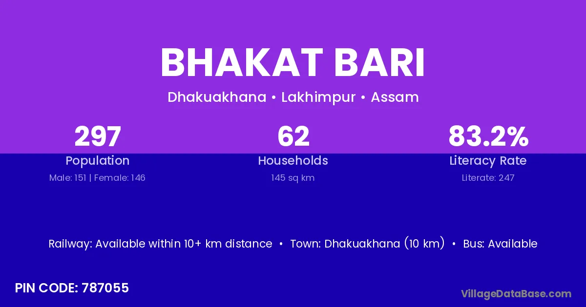 Bhakat Bari village has a total population of 297 people, of which 151 are males and 146 are females.