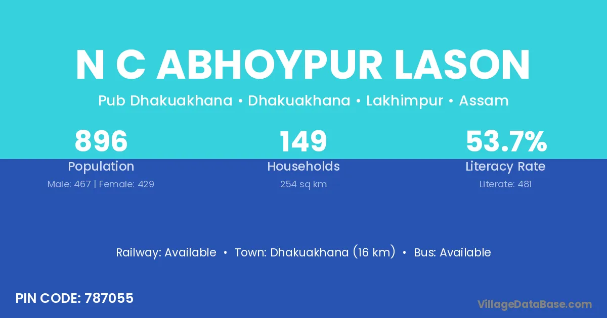 N C Abhoypur Lason village has a total population of 896 people, of which 467 are males and 429 are females.