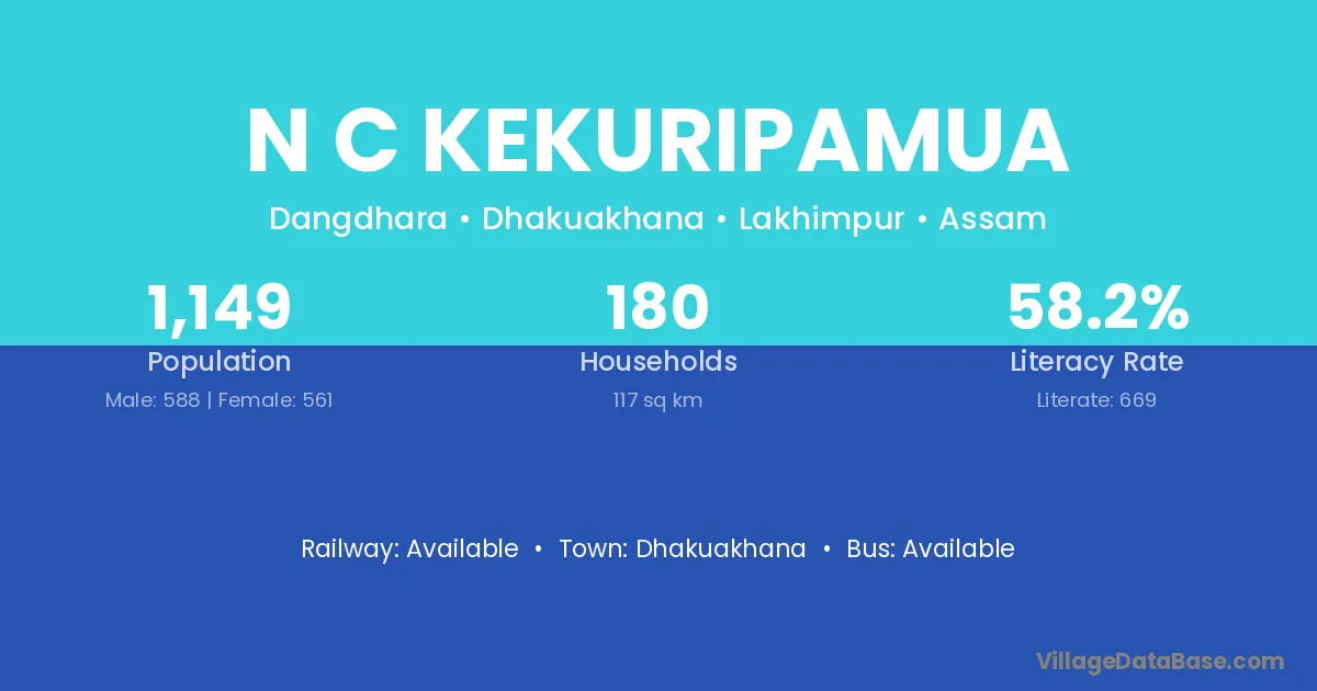 N C Kekuripamua village has a total population of 1,149 people, of which 588 are males and 561 are females.
