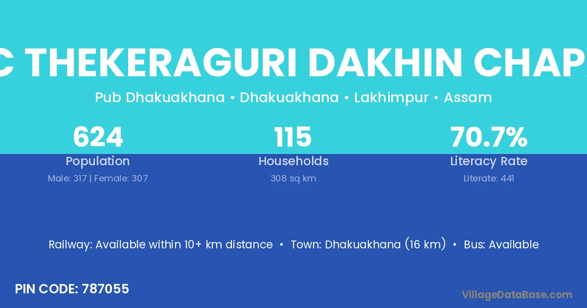 N C Thekeraguri Dakhin Chapar village has a total population of 624 people, of which 317 are males and 307 are females.