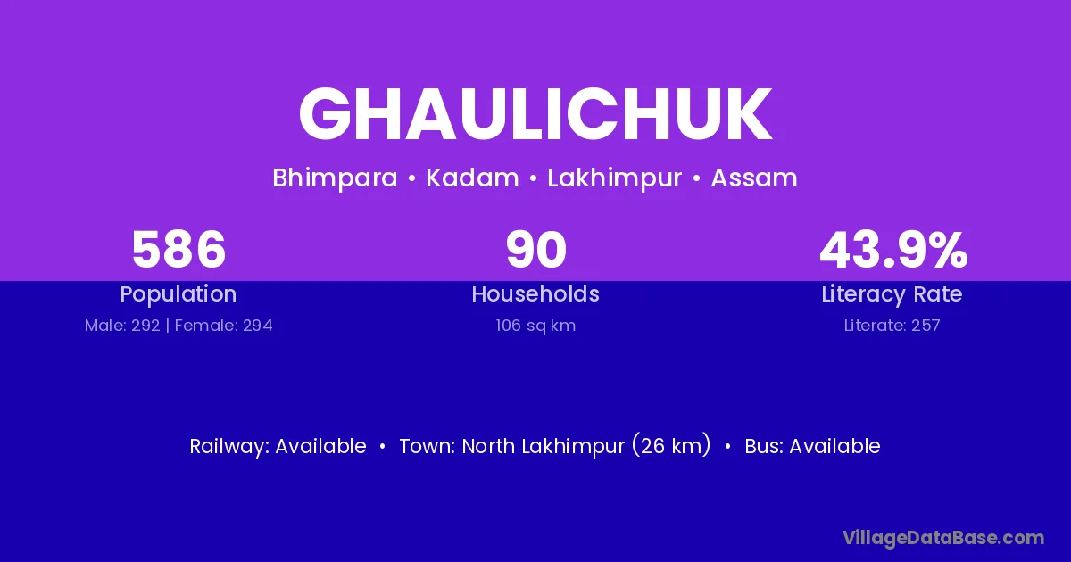 North Lakhimpur (26 km) is the nearest town to Ghaulichuk village for major economic activities and is located approximately 26 km away.
