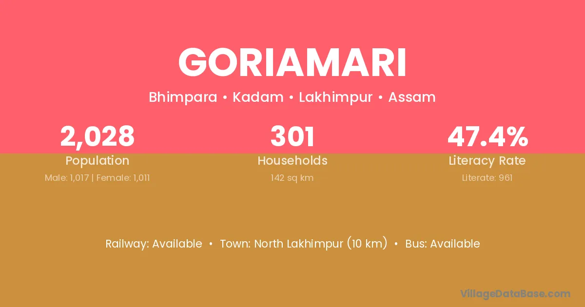 North Lakhimpur (10 km) is the nearest town to Goriamari village for major economic activities and is located approximately 10 km away.