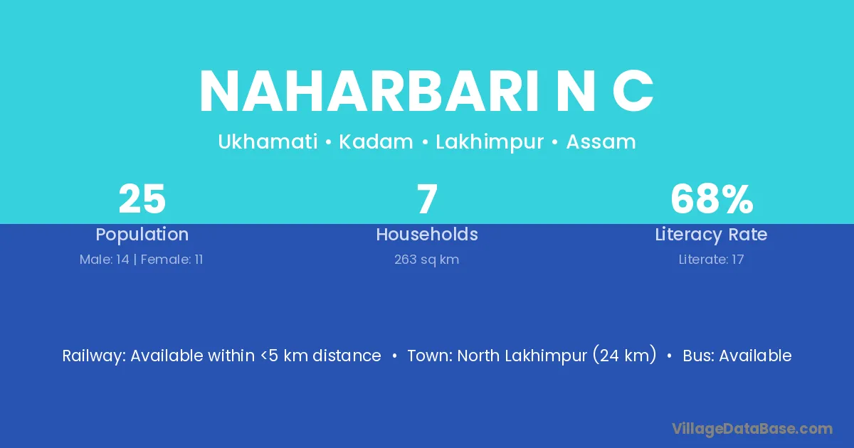 Naharbari N C village has a total population of 25 people, of which 14 are males and 11 are females.