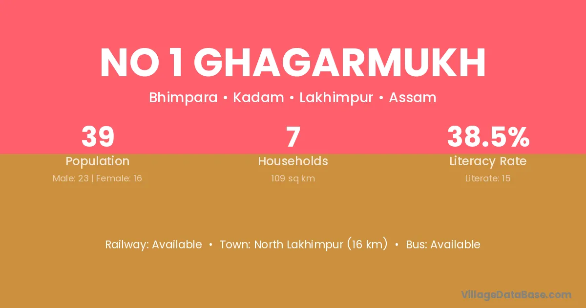 North Lakhimpur (16 km) is the nearest town to No 1 Ghagarmukh village for major economic activities and is located approximately 16 km away.
