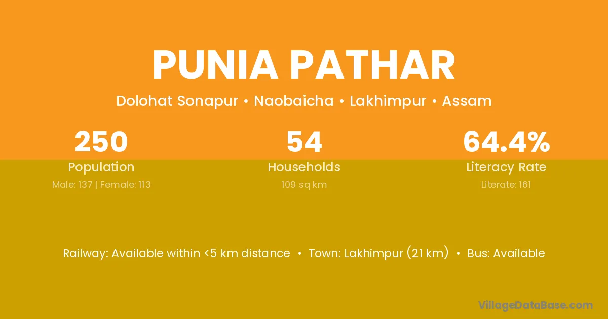 Lakhimpur (21 km) is the nearest town to Punia Pathar village for major economic activities and is located approximately 21 km away.