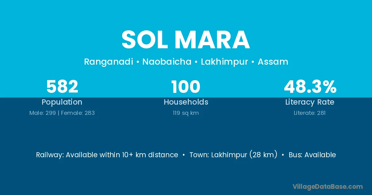 Lakhimpur (28 km) is the nearest town to Sol Mara village for major economic activities and is located approximately 28 km away.