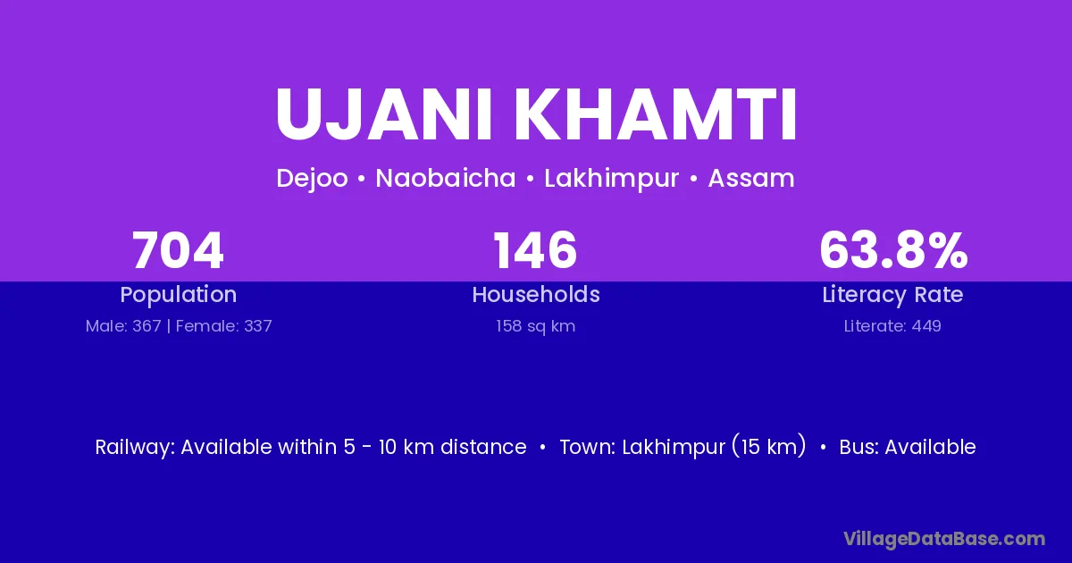 Lakhimpur (15 km) is the nearest town to Ujani Khamti village for major economic activities and is located approximately 15 km away.