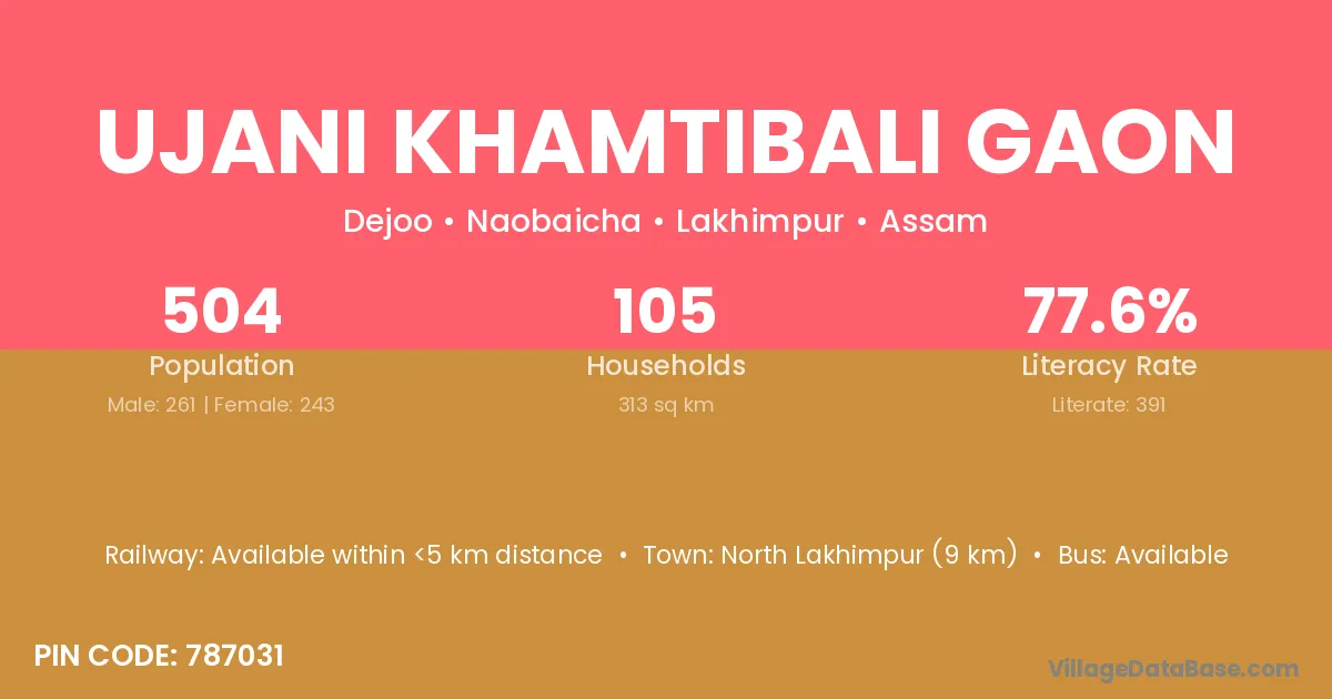 Ujani Khamtibali Gaon village has a total population of 504 people, of which 261 are males and 243 are females.