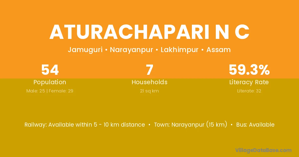 Aturachapari N C village has a total population of 54 people, of which 25 are males and 29 are females.