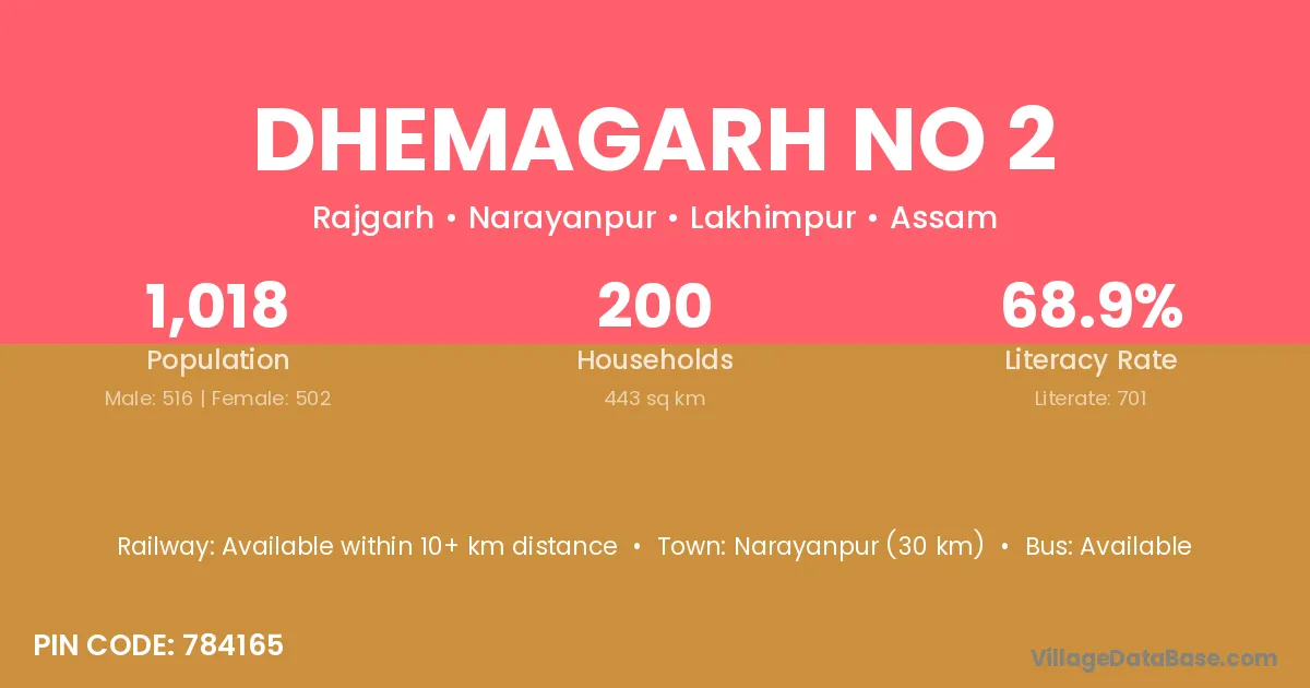 Dhemagarh No 2 village is located in the Narayanpur Subdivision of the Lakhimpur district in Assam .