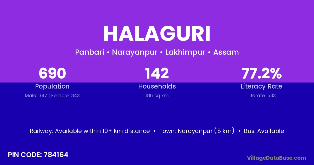 Halaguri village has a total population of 690 people, of which 347 are males and 343 are females.