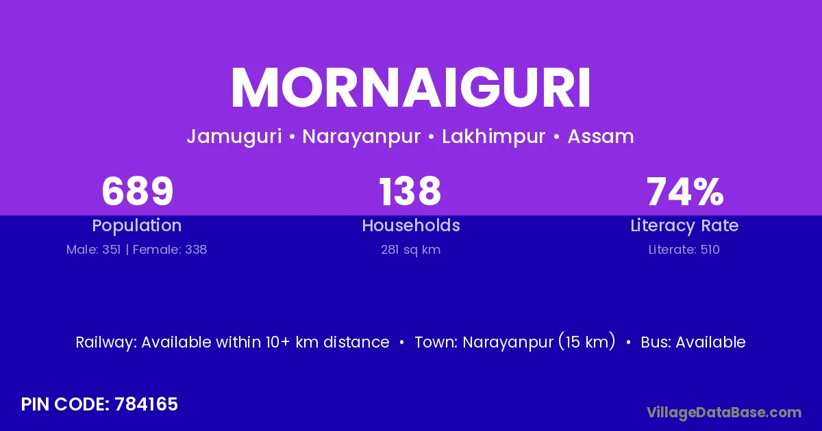 According to Census 2011 information, the village code of Mornaiguri village is 784165.