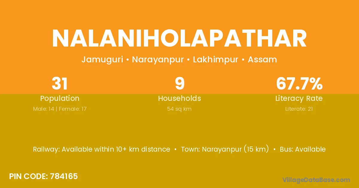 Nalaniholapathar village is located in the Narayanpur Subdivision of the Lakhimpur district in Assam .