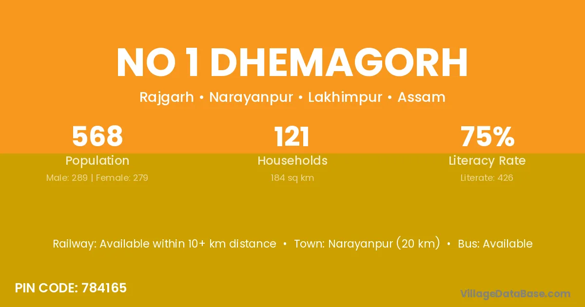 According to Census 2011 information, the village code of No 1 Dhemagorh village is 784165.