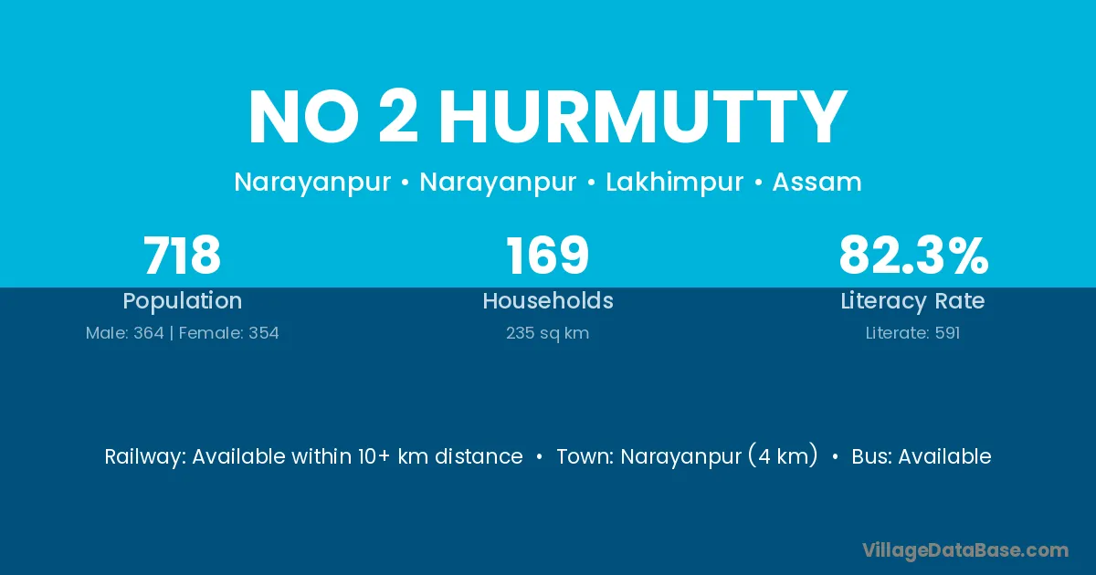 Narayanpur (4 km) is the nearest town to No 2 Hurmutty village for major economic activities and is located approximately 4 km away.