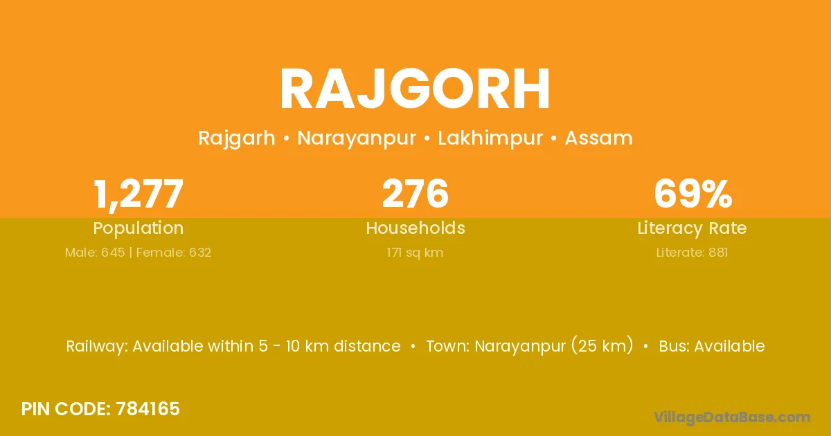 Rajgorh village is located in the Narayanpur Subdivision of the Lakhimpur district in Assam .
