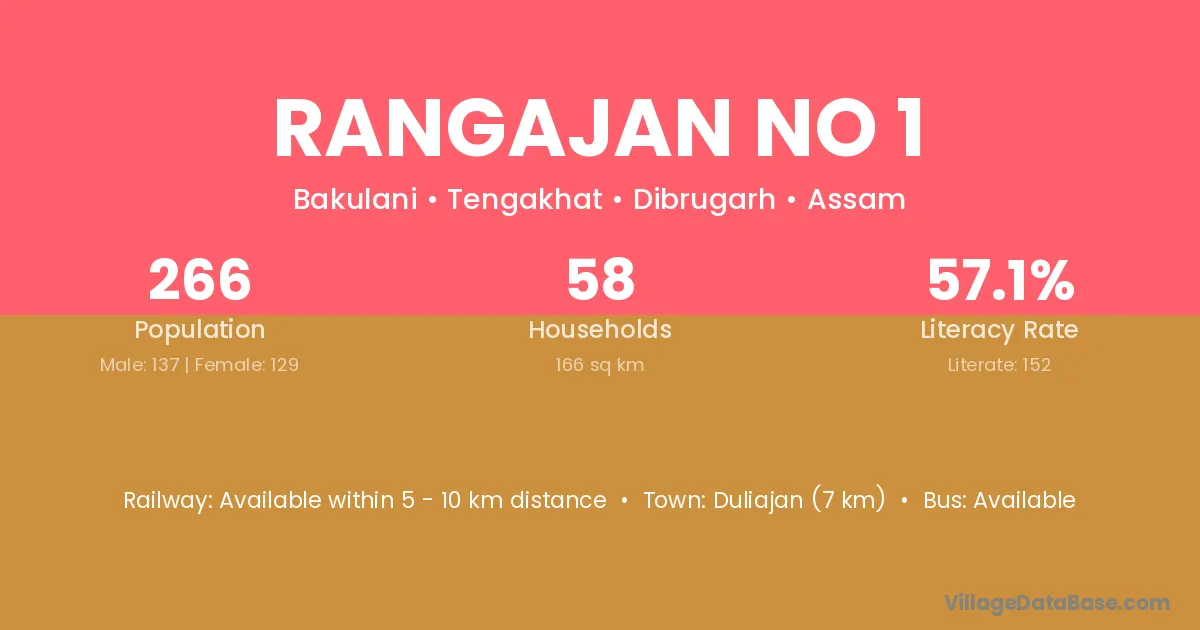 Rangajan No 1 village has a total population of 746 people, of which 403 are males and 343 are females.