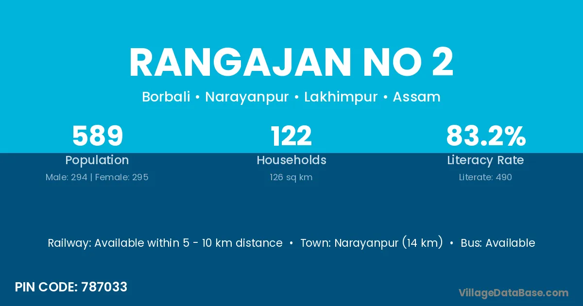 Rangajan No 2 village has a total population of 589 people, of which 294 are males and 295 are females.