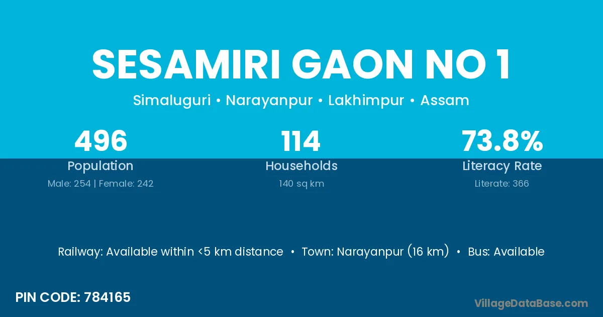Sesamiri Gaon No 1 village has a total population of 496 people, of which 254 are males and 242 are females.