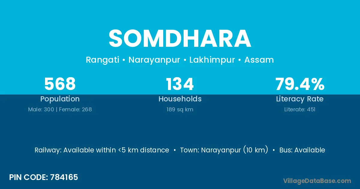 Somdhara village has a total population of 568 people, of which 300 are males and 268 are females.