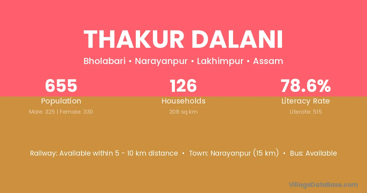 Thakur Dalani village has a total population of 655 people, of which 325 are males and 330 are females.