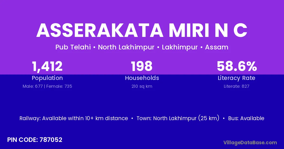 There are approximately 198 households in Asserakata Miri N C village.