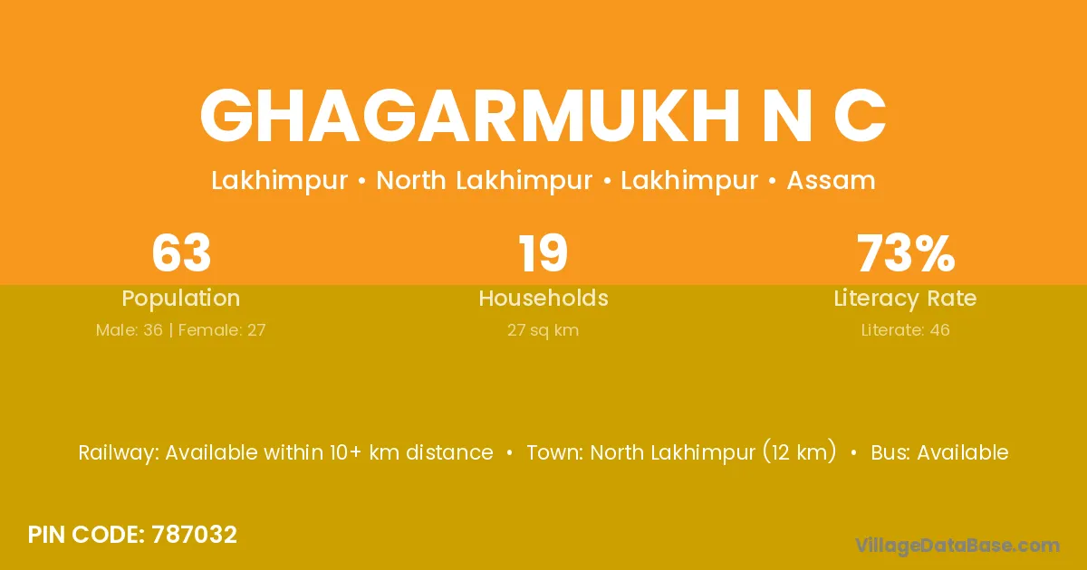 North Lakhimpur (12 km) is the nearest town to Ghagarmukh N C village for major economic activities and is located approximately 12 km away.