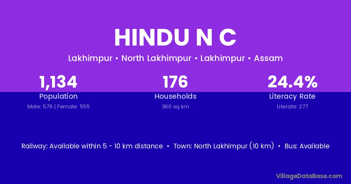 North Lakhimpur (10 km) is the nearest town to Hindu N C village for major economic activities and is located approximately 10 km away.