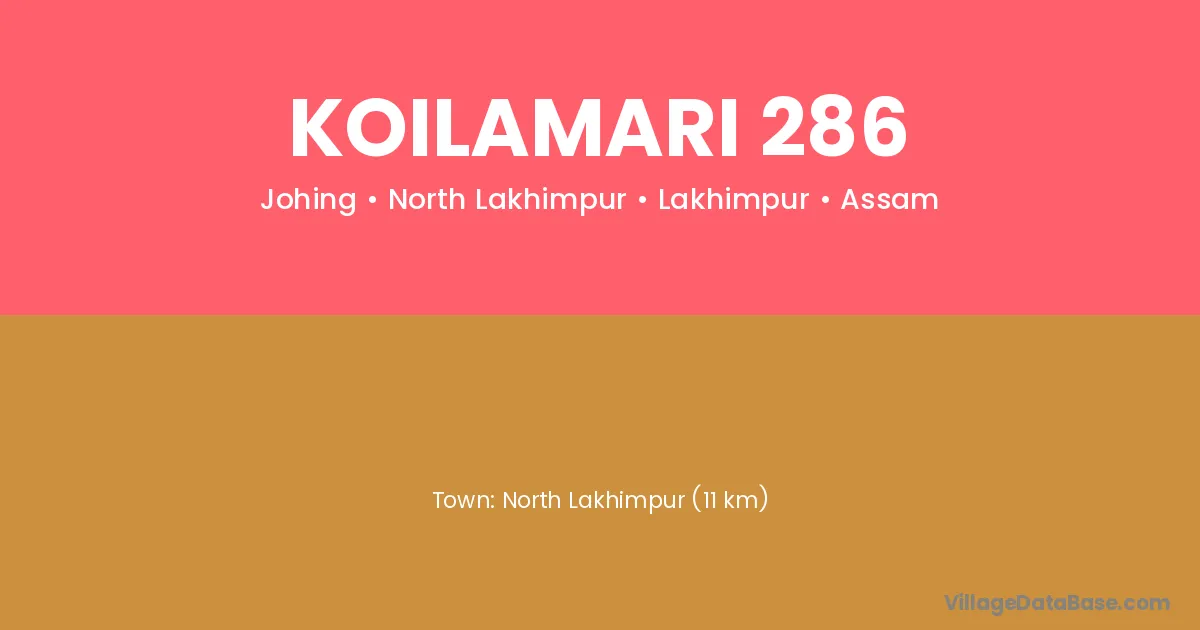 North Lakhimpur (11 km) is the nearest town to Koilamari 286 village for major economic activities and is located approximately 11 km away.