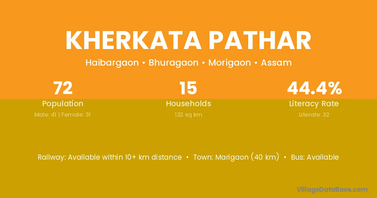 Marigaon (40 km) is the nearest town to Kherkata Pathar village for major economic activities and is located approximately 40 km away.