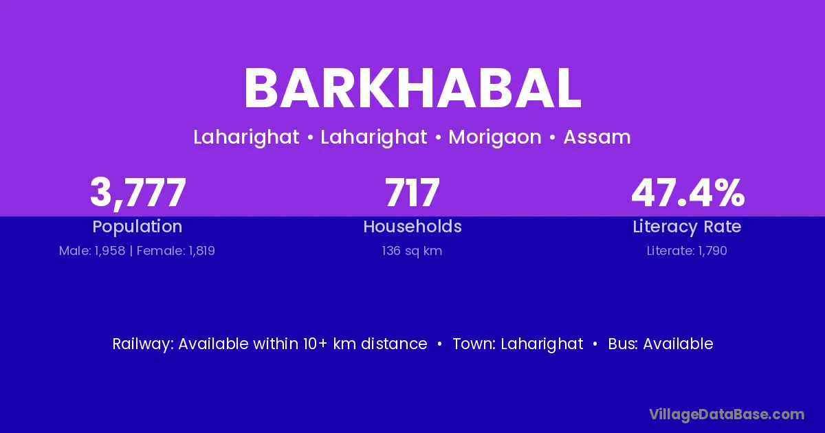 Laharighat is the nearest town to Barkhabal village for major economic activities