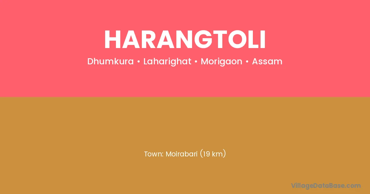 Moirabari (19 km) is the nearest town to Harangtoli village for major economic activities and is located approximately 19 km away.