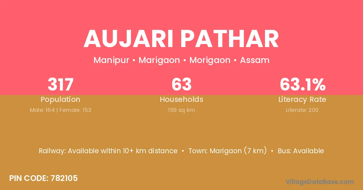 Marigaon (7 km) is the nearest town to Aujari Pathar village for major economic activities and is located approximately 7 km away.