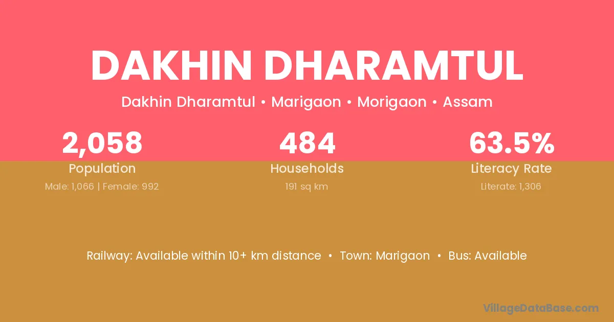 Marigaon is the nearest town to Dakhin Dharamtul village for major economic activities