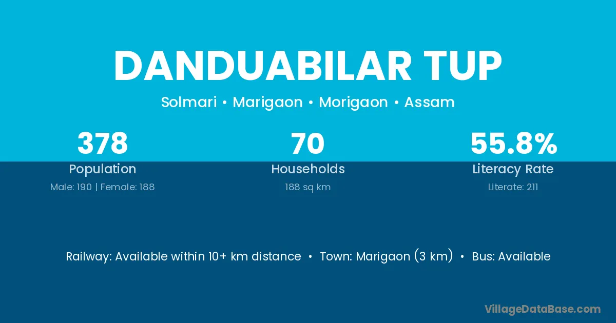 Marigaon (3 km) is the nearest town to Danduabilar Tup village for major economic activities and is located approximately 3 km away.