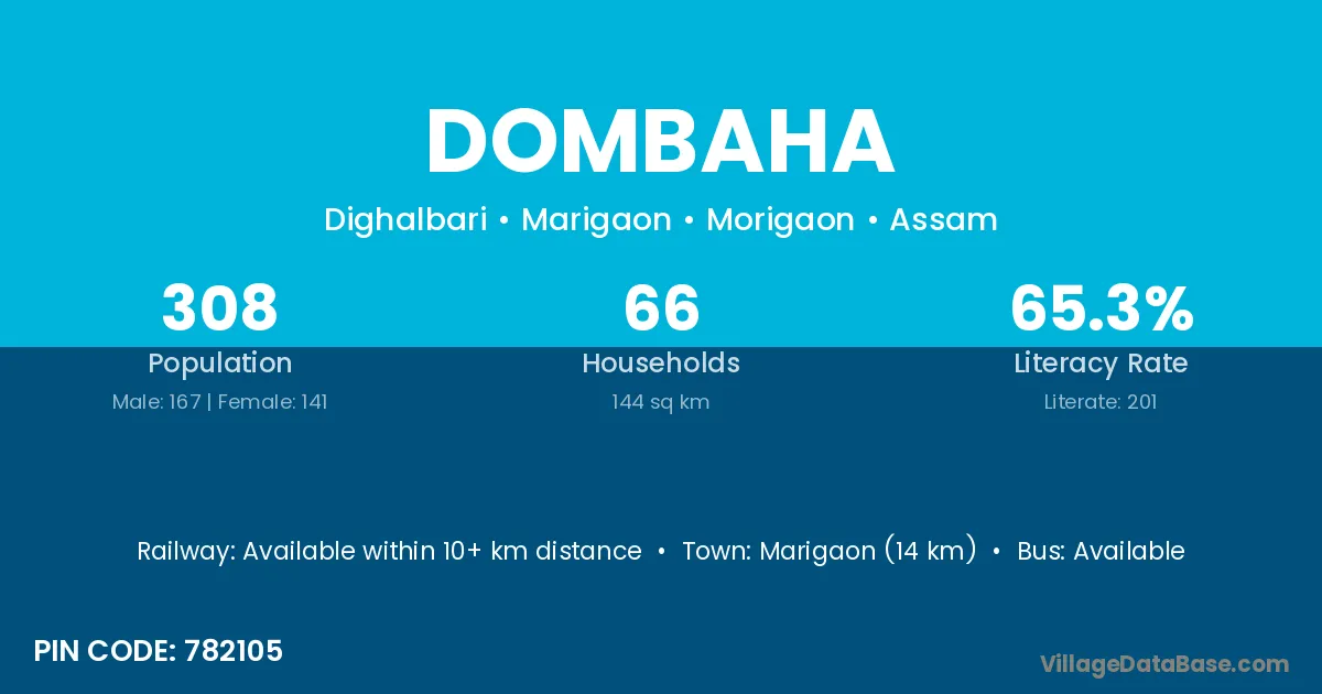 Marigaon (14 km) is the nearest town to Dombaha village for major economic activities and is located approximately 14 km away.