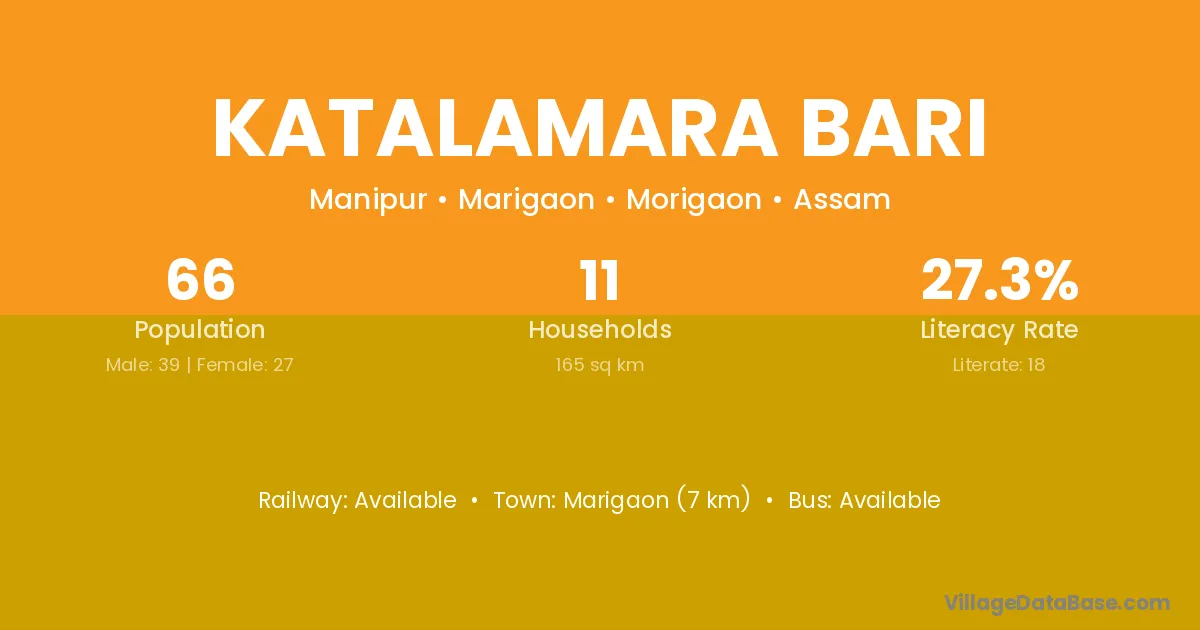 Marigaon (7 km) is the nearest town to Katalamara Bari village for major economic activities and is located approximately 7 km away.