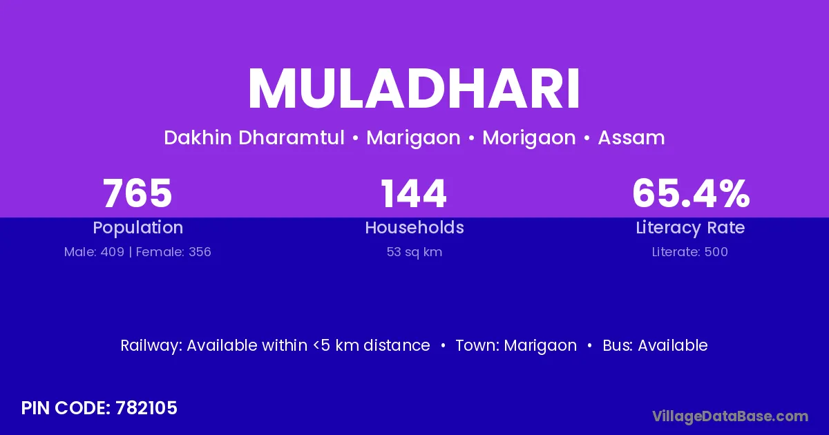 Marigaon is the nearest town to Muladhari village for major economic activities