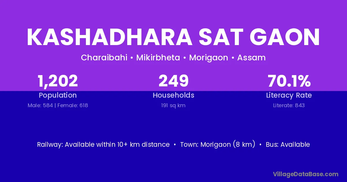 Kashadhara Sat Gaon village has a total population of 1,202 people, of which 584 are males and 618 are females.