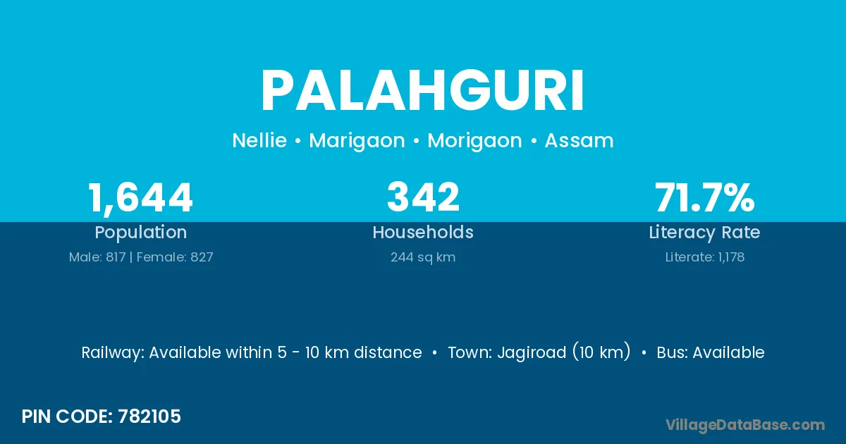 Morigaon (18 km) is the nearest town to Palahguri village for major economic activities and is located approximately 18 km away.
