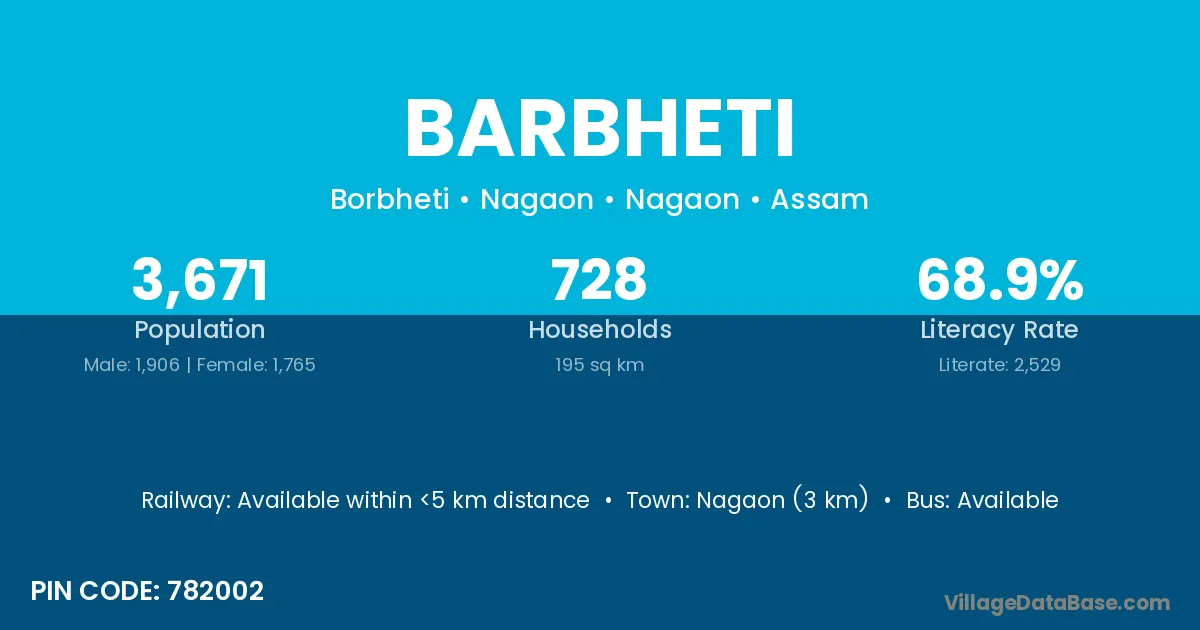 Dhing (6 km) is the nearest town to Barbheti village for major economic activities and is located approximately 6 km away.