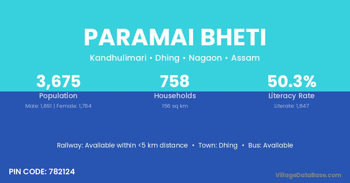 Dhing is the nearest town to Paramai Bheti village for major economic activities
