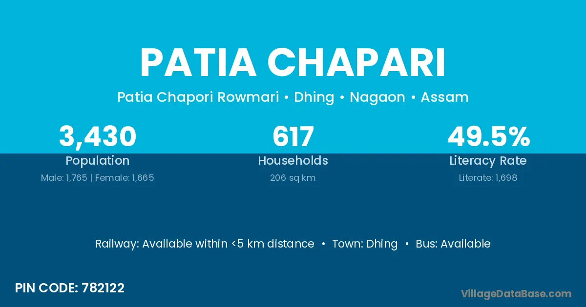 Dhing is the nearest town to Patia Chapari village for major economic activities