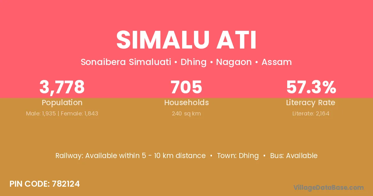 Simalu Ati village has a total population of 3,778 people, of which 1,935 are males and 1,843 are females.