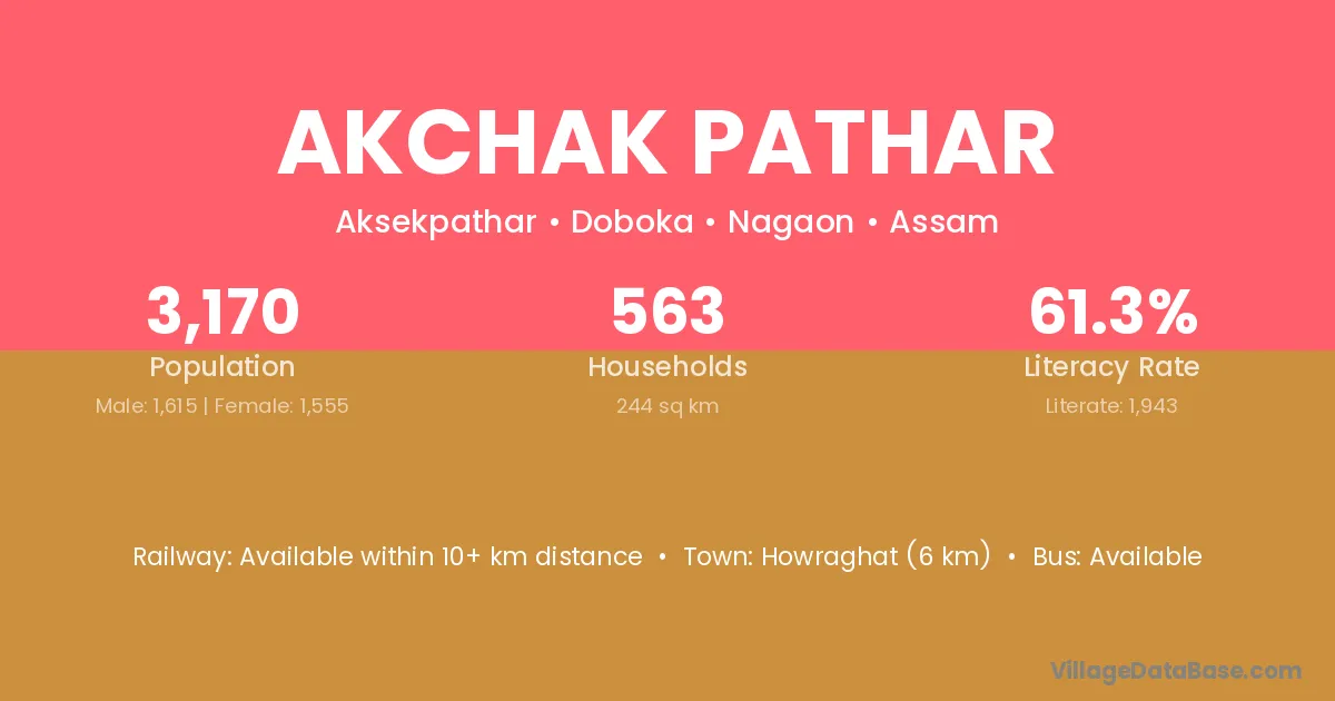 Howraghat (6 km) is the nearest town to Akchak Pathar village for major economic activities and is located approximately 6 km away.