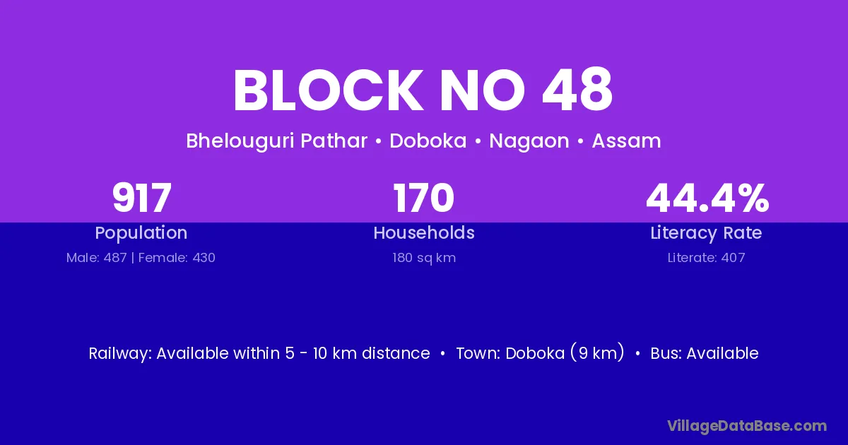 Doboka (9 km) is the nearest town to Block No 48 village for major economic activities and is located approximately 9 km away.