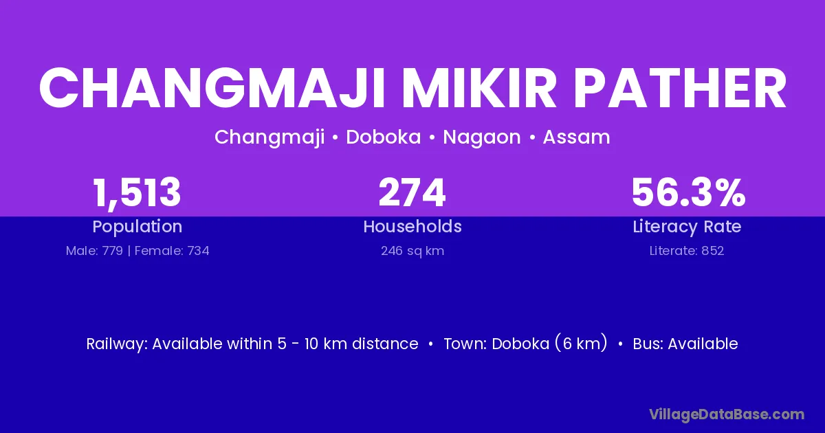 Doboka (6 km) is the nearest town to Changmaji Mikir Pather village for major economic activities and is located approximately 6 km away.