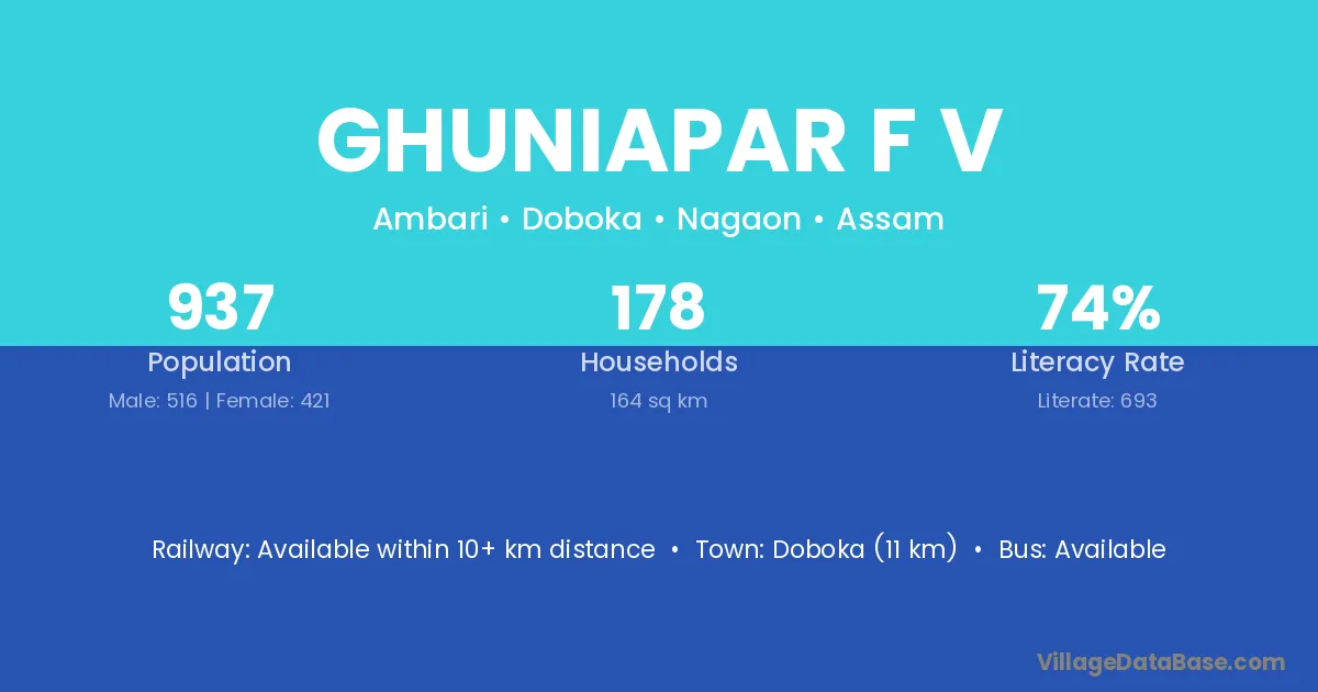 Doboka (11 km) is the nearest town to Ghuniapar F V village for major economic activities and is located approximately 11 km away.