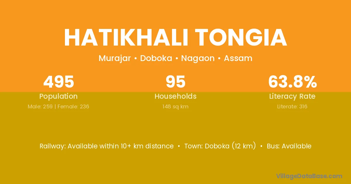 Hatikhali Tongia village is located in the Doboka Subdivision of the Nagaon district in Assam .