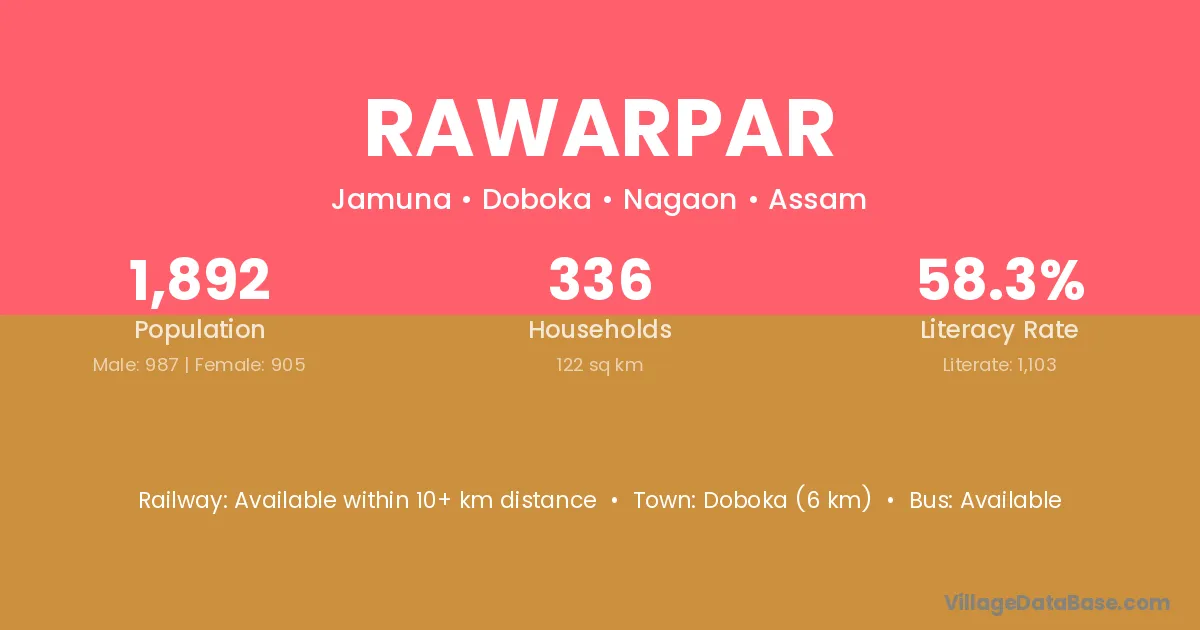 Doboka (6 km) is the nearest town to Rawarpar village for major economic activities and is located approximately 6 km away.
